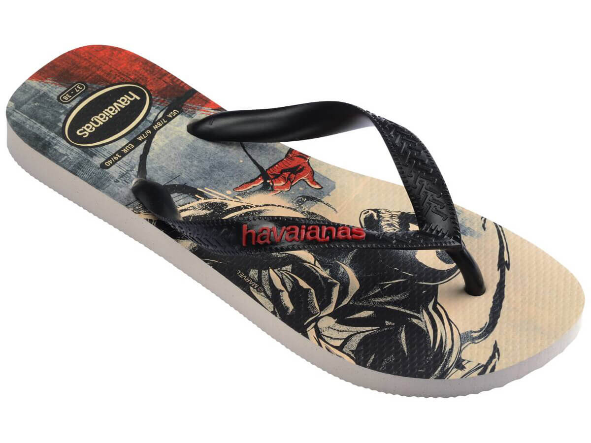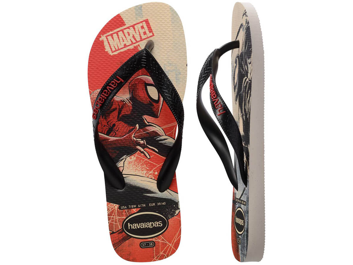A Havaianas Top Marvel Classics homenageia os super-heróis que fazem parte desse grande universo, resgatando o traçado clássico das histórias em quadrinhos e estampando-o na sola. Para nenhum fã da Marvel botar defeito!