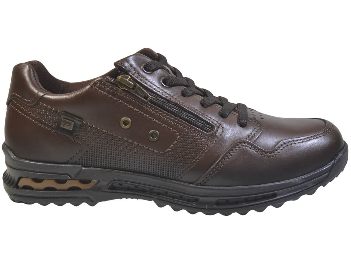 O Sapatênis Pegada 111801 é um calçado masculino em couro de alta qualidade, focado em conforto e praticidade. Possui a tecnologia Amortech (amortecedor no calcanhar) e solado antiderrapante, com sistema "Calce Fácil" (cadarço elástico e zíper lateral). Ideal para o dia a dia.