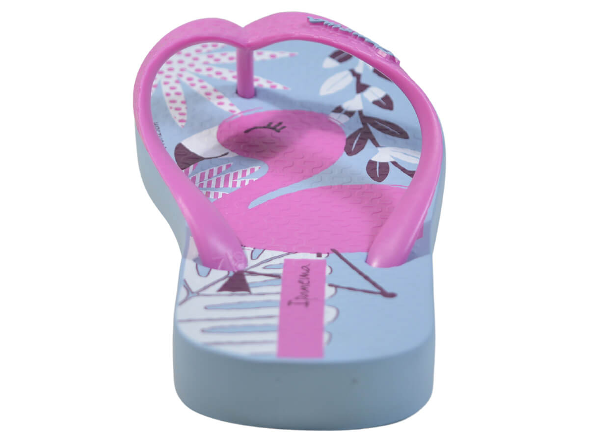 Para Ipanema Fantasia, os principais temas infantis estampam a palmilha, sendo eles unicórnios para as meninas e dinos para os meninos em uma linguagem comercial junto aos pequenos.