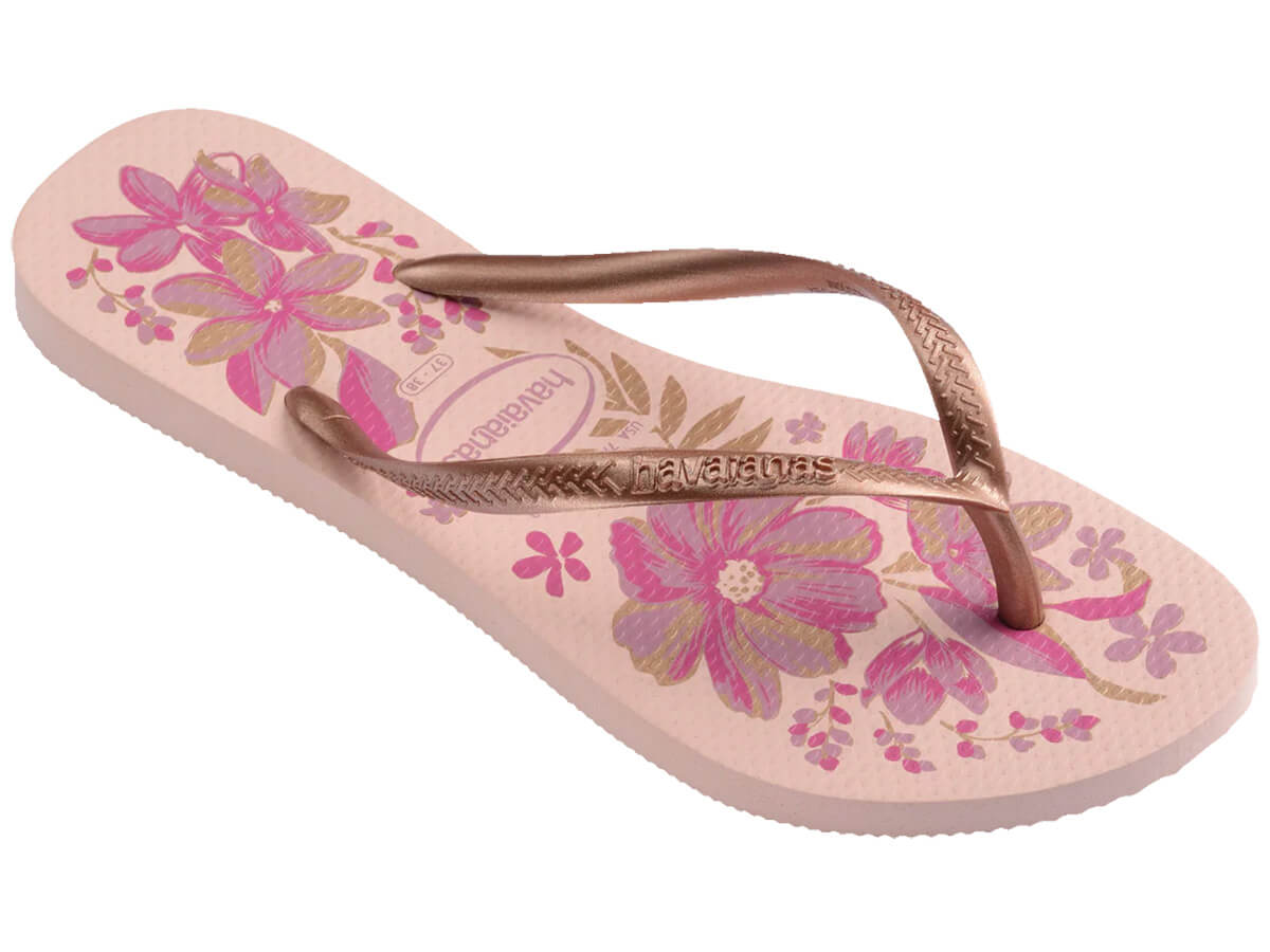 Delicado e romântico, o chinelo feminino Havaianas Slim Organic é simplesmente um dos nossos modelos mais clássicos. Slim, ou seja, com as tiras e o solado antiderrapante mais finos, a sandália ainda conta com o toque de sofisticação das tiras metalizadas. Com estampas florais atemporais em toque metálico, o chinelo está disponível em três cores: escolha a sua favorita.