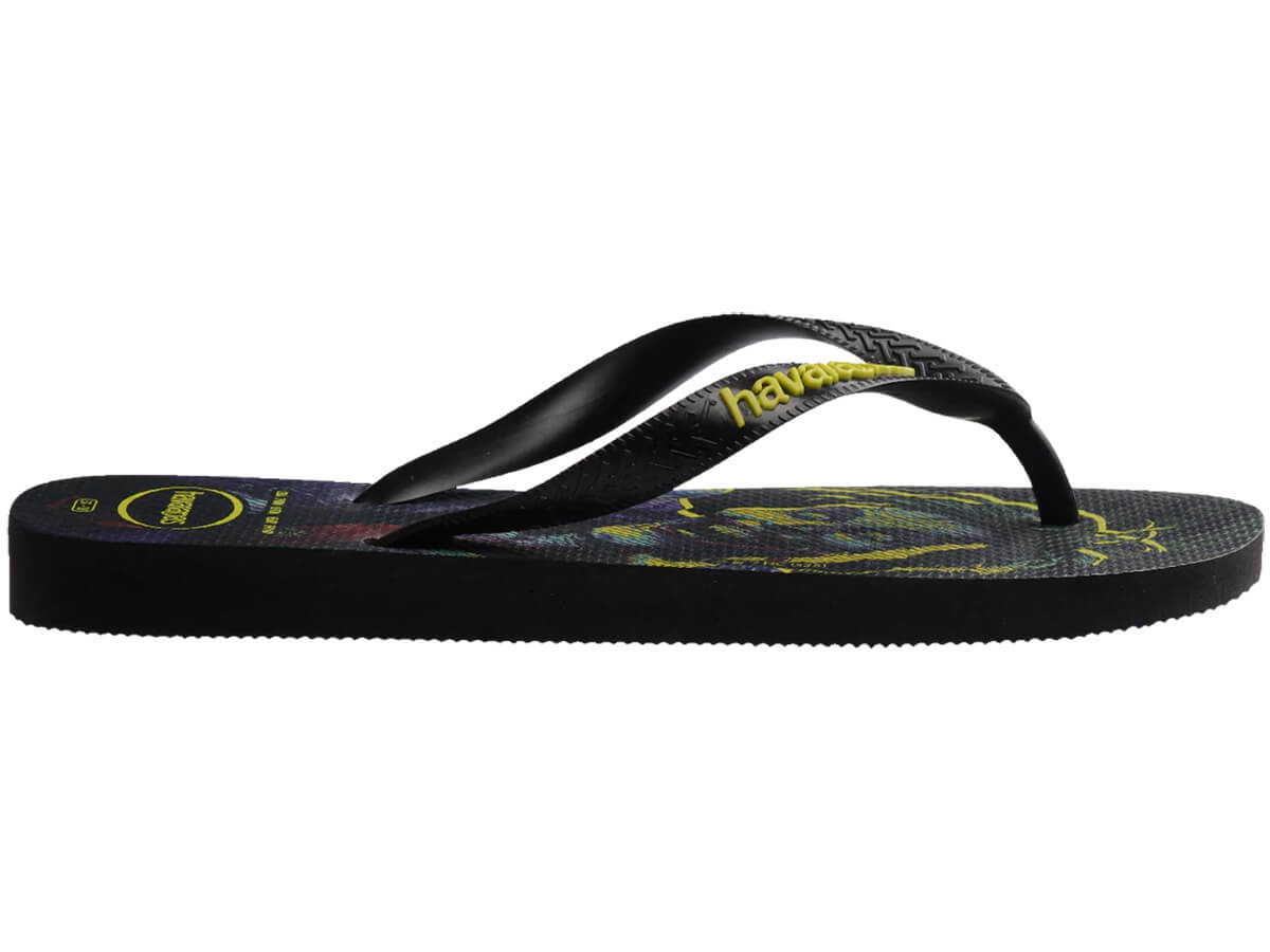 Dois dos heróis mais amados e famosos de todos os tempos direto para o seu chinelo! A sandália Havaianas Top Heróis DC traz duas estampas incríveis: do Batman e uma estampa inédita do Superman inspirada no novo filme do Homem de Aço. Modelo top, o produto ainda conta com tiras em cores contrastantes e logo Havaianas em destaque. Compre agora!