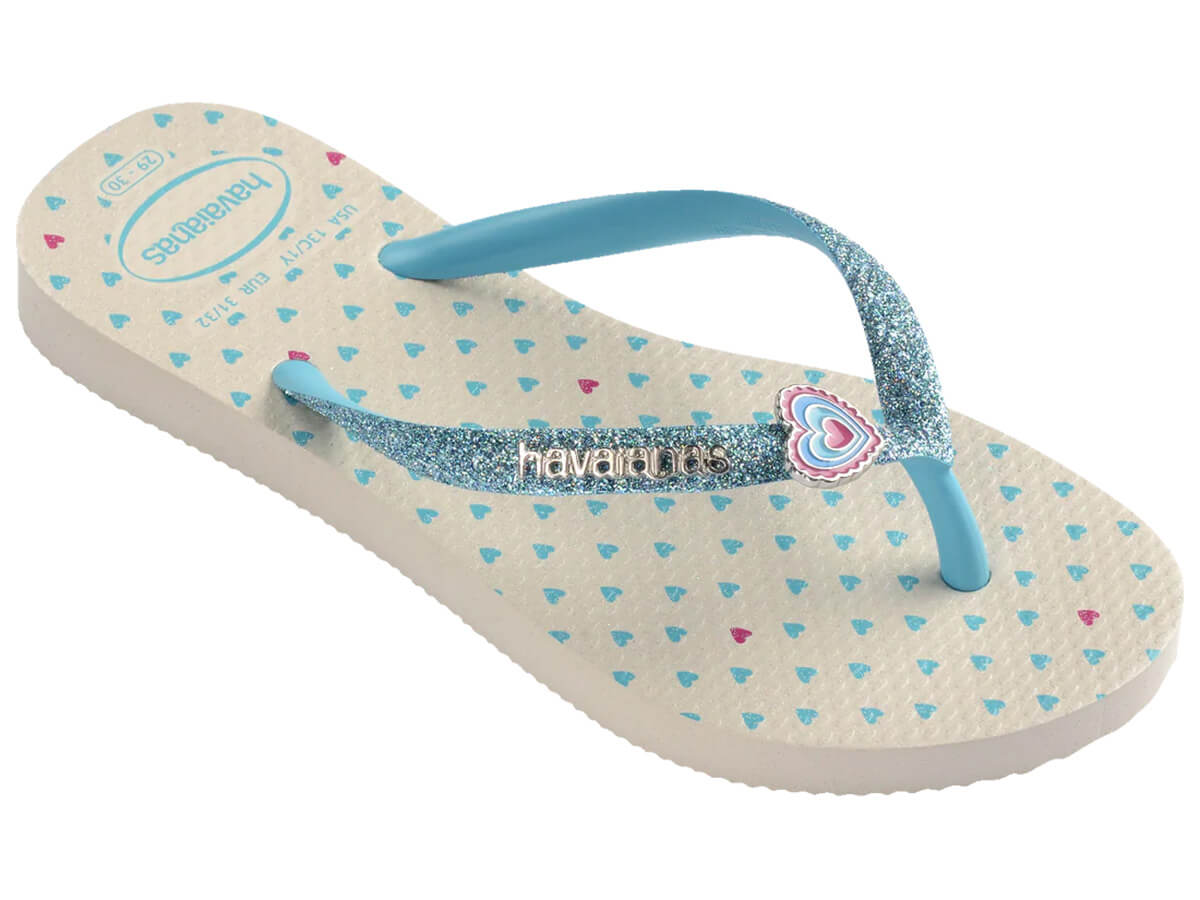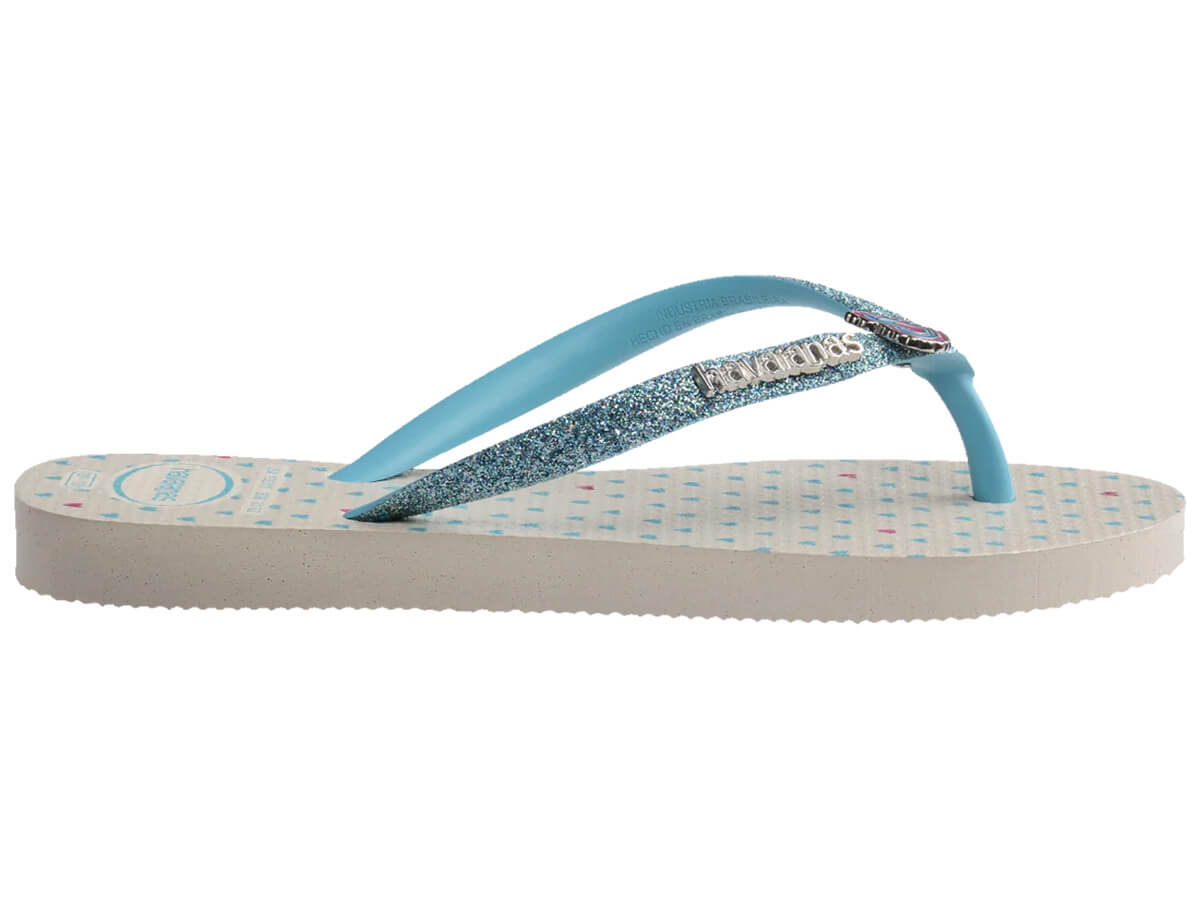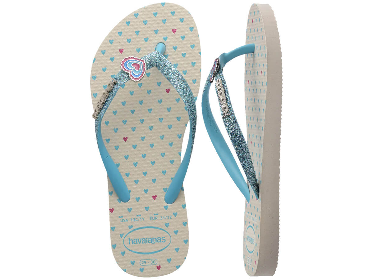 Tudo foi pensado para trazer uma explosão de brilhos e fofura no chinelo Kids Slim Glitter II. Essa sandália, com o modelo delicado da slim, com tiras e solado mais finos, possui as tiras metalizadas com aplicações de glitter que combinam com a estampa da sola.