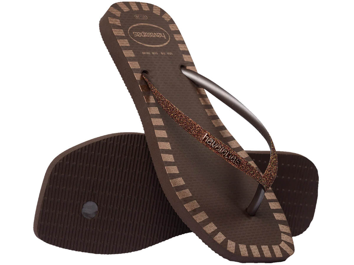 A Havaianas Slim Square Glitter Contour é uma sandália que combina a modernidade do design com bico quadrado com a sofisticação das tiras com glitter. É uma versão elegante e moderna do clássico chinelo da marca.