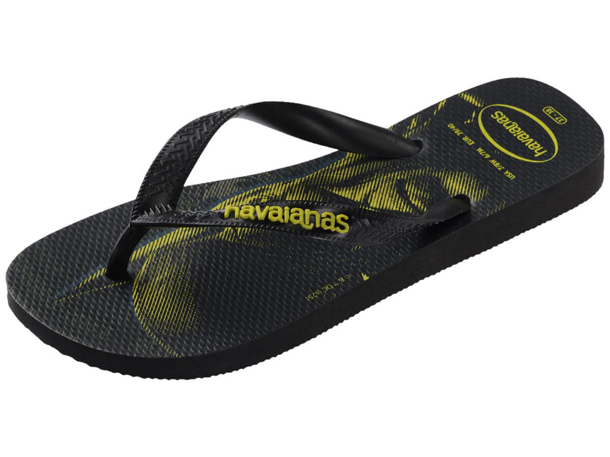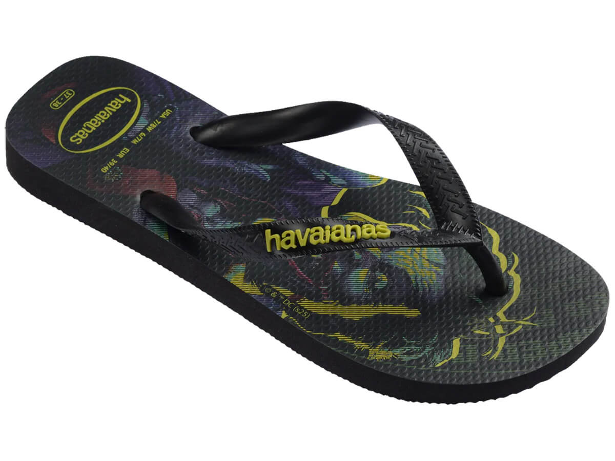 Dois dos heróis mais amados e famosos de todos os tempos direto para o seu chinelo! A sandália Havaianas Top Heróis DC traz duas estampas incríveis: do Batman e uma estampa inédita do Superman inspirada no novo filme do Homem de Aço. Modelo top, o produto ainda conta com tiras em cores contrastantes e logo Havaianas em destaque. Compre agora!