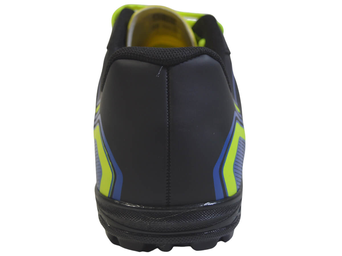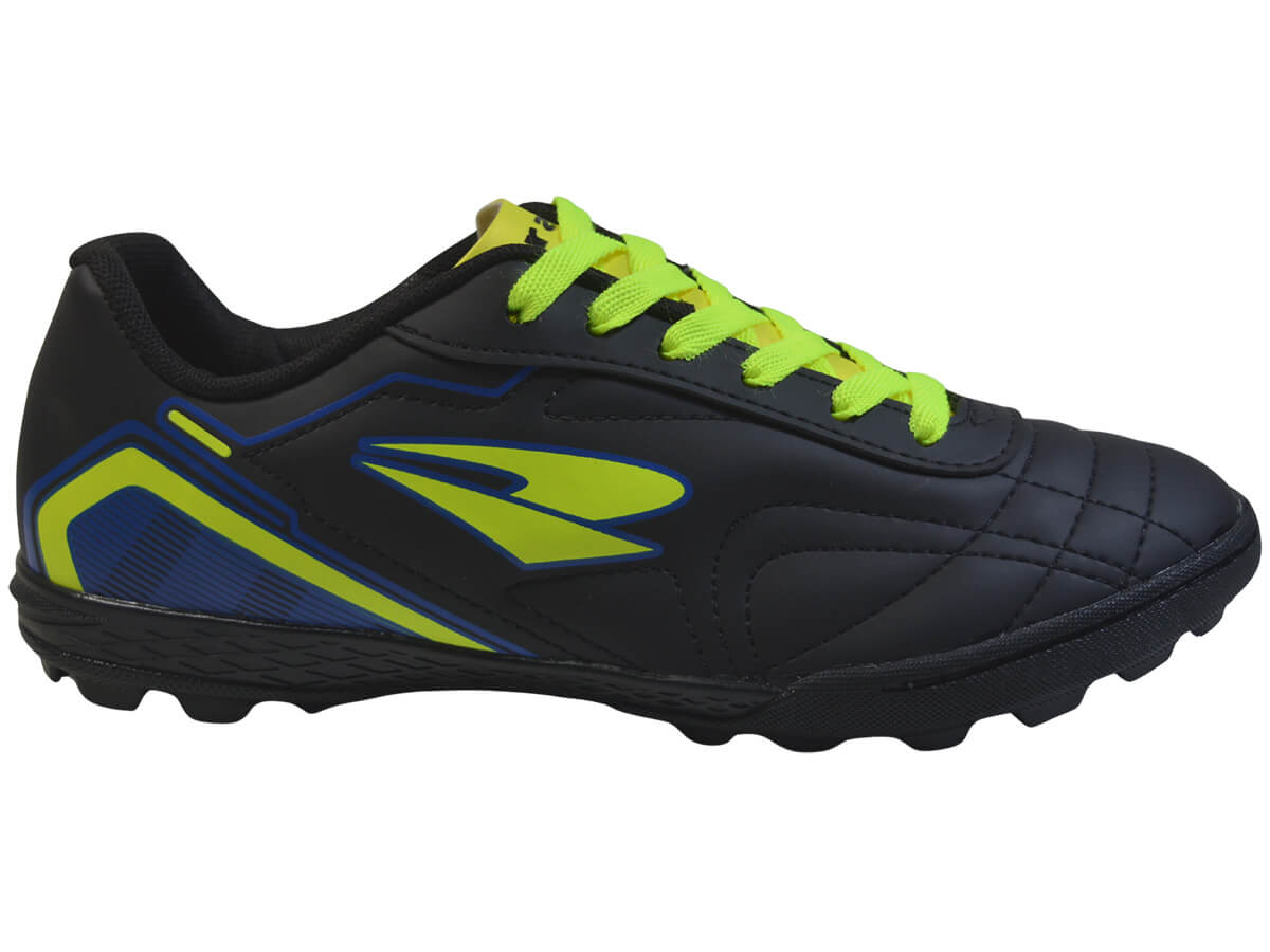 Ideal para gramados sintéticos, a chuteira Dray R.307‑3411 combina durabilidade, conforto e tração. Possui cabedal em PVC laminado com costuras reforçadas, forro têxtil acolchoado e palmilha macia. O solado em borracha com gomos garante firmeza nas jogadas, enquanto o fechamento em cadarço oferece ajuste seguro. Um modelo versátil, resistente e ideal para jogos de futebol society.