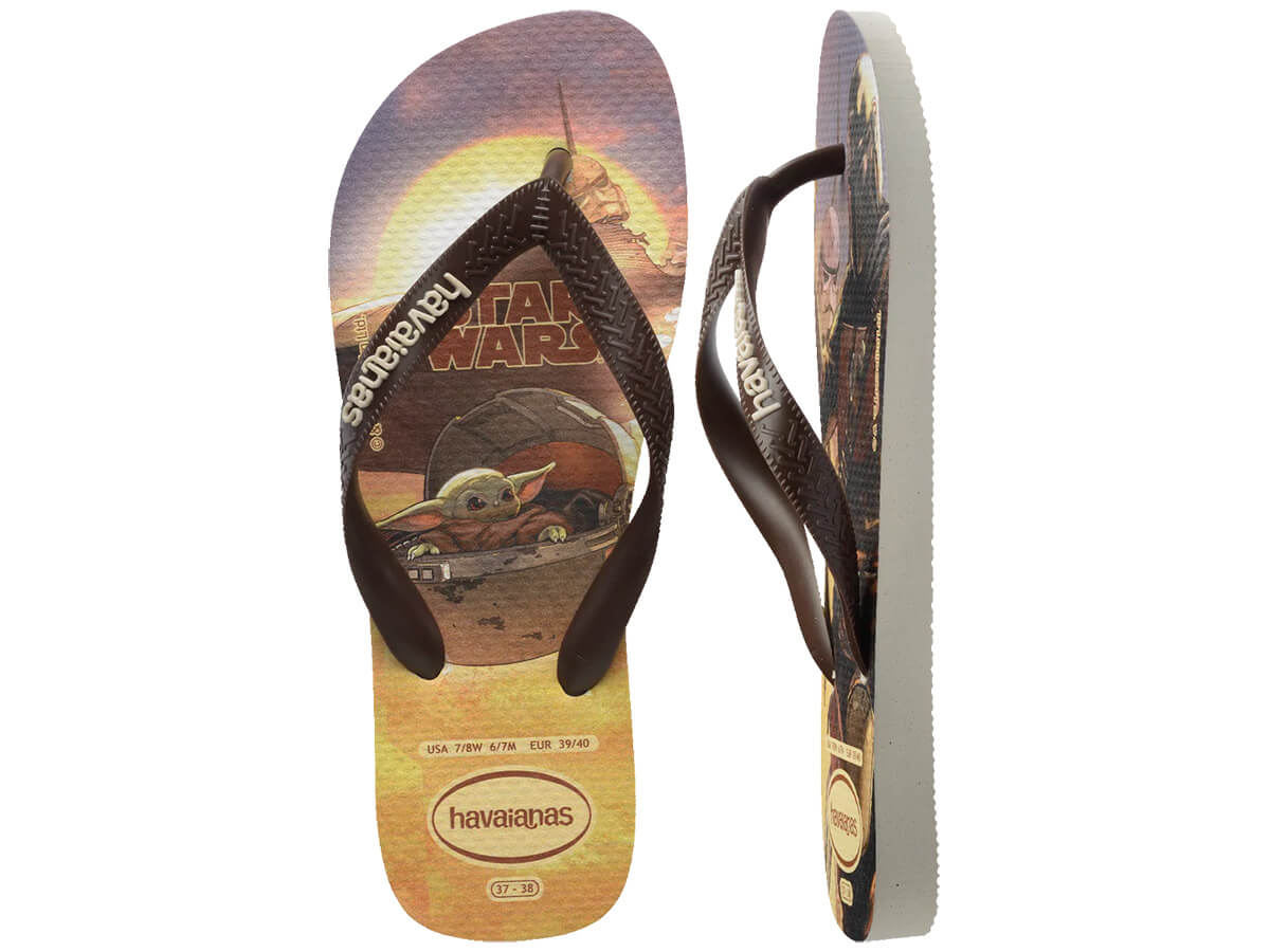Na galáxia muito, muito distante de Star Wars, quem você escolhe: Darth Vader junto dos Stormtroopers ou o Mandaloriano ao lado do Grogu? O chinelo Havaianas Star Wars é uma carta de amor aos fãs da franquia e traz duas estampas exclusivas para quem ama os icônicos vilões ou os novos mocinhos. Resistente à água, o modelo top, com tiras e solado mais grossos, possui sola feita 100% de borracha e logo Havaianas pop-up aplicado nas tiras. Descubra qual combina mais com você!